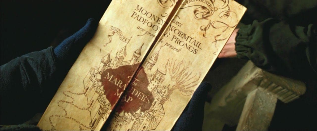 «نقشهی غارتگر» (Marauder’s Map) بین سالهای 1975 و 1978 ایجاد شده، چرا که اسمهای روی نقشه «مونی» (Moony)، «دم باریک» (Wormtail)، «پانمدی» (Padfoot) و «شاخدار» (Prongs) اسمهای مستعار این گروه در فرم به آنیماگوس اونهاست. طلسم اصلی این نقشه Homonculous Charm هست، یه طلسم قدرتمند و پیشرفته که برای ردیابی افراد استفاده میشه. جدا از این طلسم یه ورد مخصوص هم برای توهین به اشخصاص روی نقشه فعاله، مثل اتفاقی که توی «هری پاتر و زندانی آزکابان» برای «سوروس اسنیپ» (Severus Snape) افتاد. تهیهی این نقشه نیازمند شبگردیهای فراوان تو قلعه و محوطهی هاگوارتز بوده که با وجود شنل نامرئی جیمز و توانایی اونها در تغییر شکل به فرم حیوانی کار چندانی سختی نیست، با این وجود مکانهایی مثل «اتاق ضروریات» (Room of Requirement) و «تالار اسرار» (Chamber of Secrets) توی این نقشه وجود ندارن. این نقشه توسط «آرگوس فیلچ» (Argus Filch) در آخرین سال تحصیلی غارتگرها در هاگوارتز مصادره شد و بعدها به دست «فرد و جورج ویزلی» افتاد.