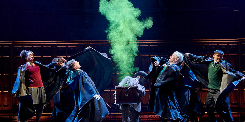 یکی از عناصر کلیدی موفقیت نمایش، طراحی صحنه و میزانسن است که بهگونهای منحصربهفرد دنیای جادویی رولینگ را به زبان تئاتر ترجمه میکند. جلوههای ویژهی صحنه، نورپردازی و طراحی صدا با دقتی سینمایی اجرا میشوند تا مخاطب جادو را نه فقط ببیند بلکه حس کند.