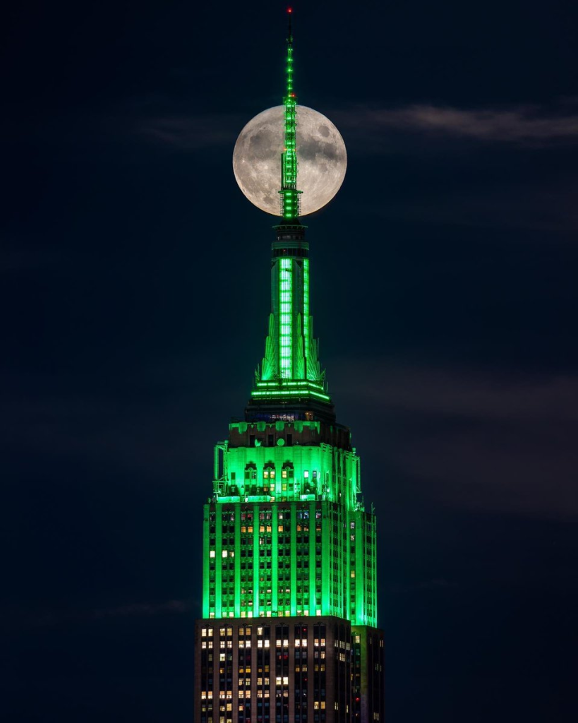 نور سبز اسلیترین بر فراز آسمان نیویورک